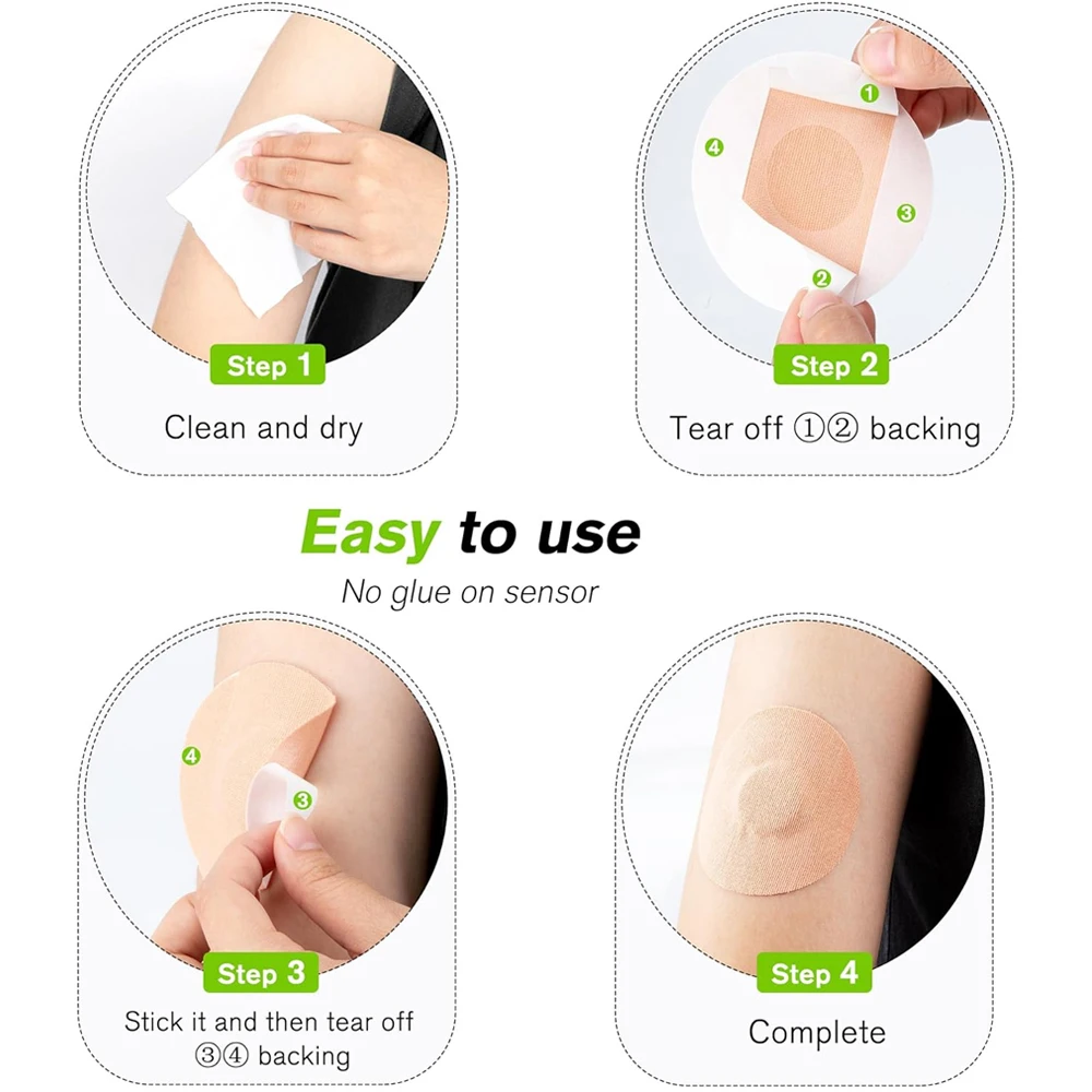 4. EASY APPLICATION -With Pre-cut backing paper for easy peeling off and applying.No glue in the center of patches,which will be convenient and no damage to your sensor,when you need to change a new patch.